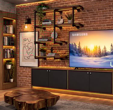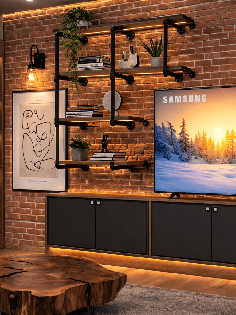 The contrast between textures creates depth and character, resulting in a balanced and visually engaging space.
