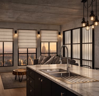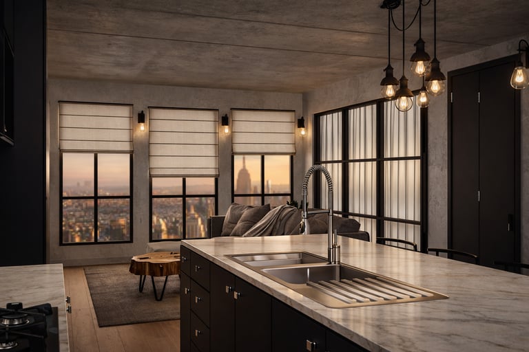 This project blends industrial elements with a warm and inviting atmosphere.