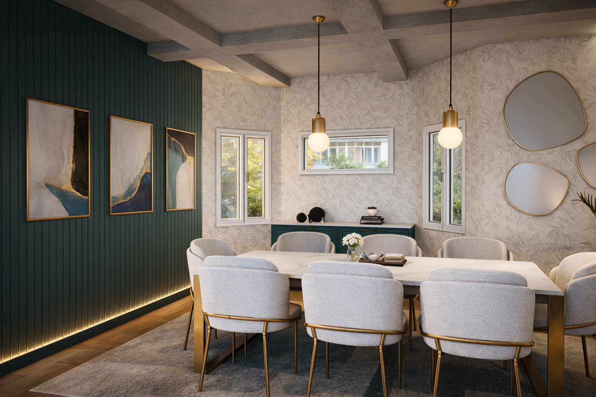This dining space was designed with a focus on clean lines, balanced proportions and subtle material contrasts.