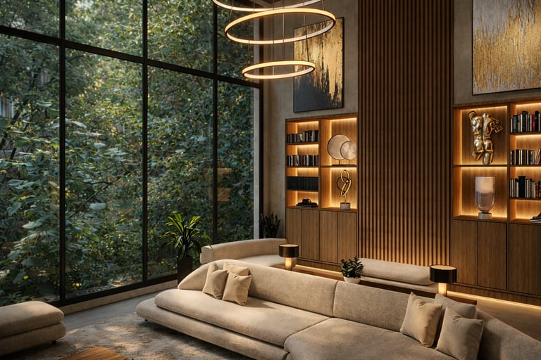 The composition reinforces a sense of calm sophistication, where every element contributes to a cohesive and refined environment.